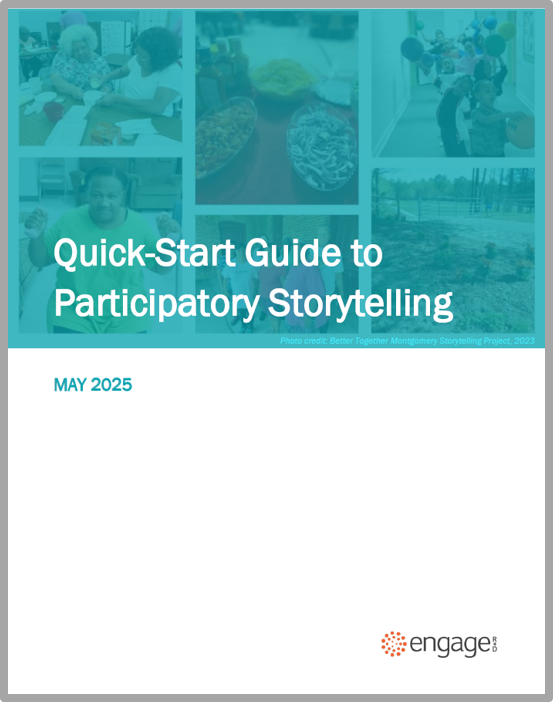 Quick-Start Guide to Participatory Storytelling: During the session, we will share tips and tools to implement storytelling projects that can enhance equity-focused evaluation and learning practices within your own work. Every community and project are unique, so we offer these ideas as suggestions that you should feel free to adapt to meet the needs and context of your individual project.